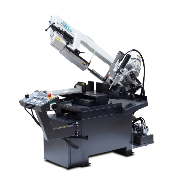 Poloautomatická pásová pila s hydraulickým ovládáním.